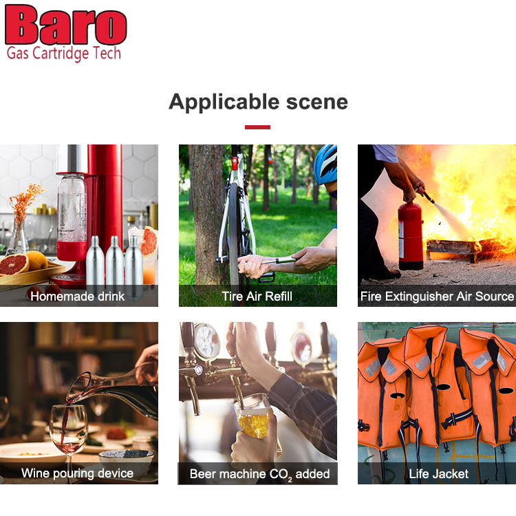 74g CO2-patroner används i all dryckesutrustning som kräver 5/8"-18 gängade patroner. Dessa 74g CO2-icke-påfyllningsbara patroner är designade för konservering, kolsyra och dispensering av drycker. Tomma bläckpatroner bör förvaras med återvinningsbart hushållsmaterial som soppa och dryck burkar De är gjorda av mjukt stål och är designade för att möta de krävande behoven dryckesindustrin. Vi svetsar dessa stängda perforerade kapslar.