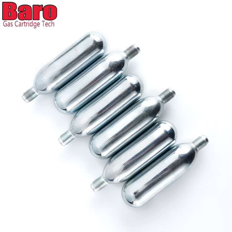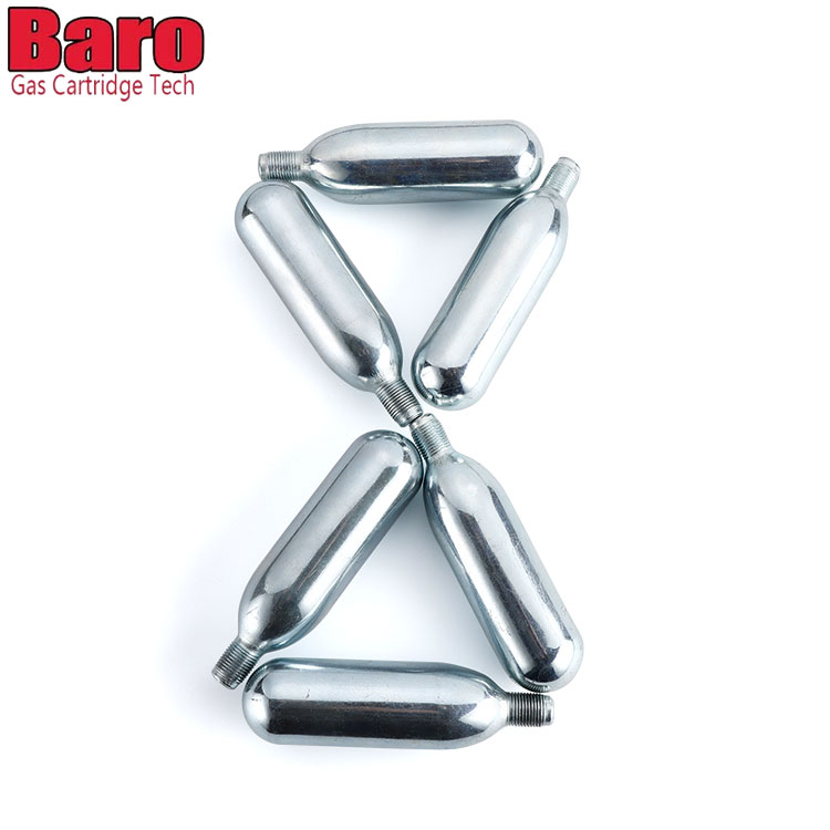 Baro 74g CO2-patroner för öldispensering använder ett lock/stängningssystem för att säkerställa inga gasläckor och lång hållbarhet. Trippelfiltrering, smak och säkerhet. ej återfyllbar, engångsbruk. CO2-patronen är gjord av 100 % återvinningsbart rostfritt stål. Våra skal är tillverkade enligt högsta standard och är fria från metallskärvor och inga oljerester, så de kommer inte att ge ditt kolsyrade vatten en lukt eller fet smak.